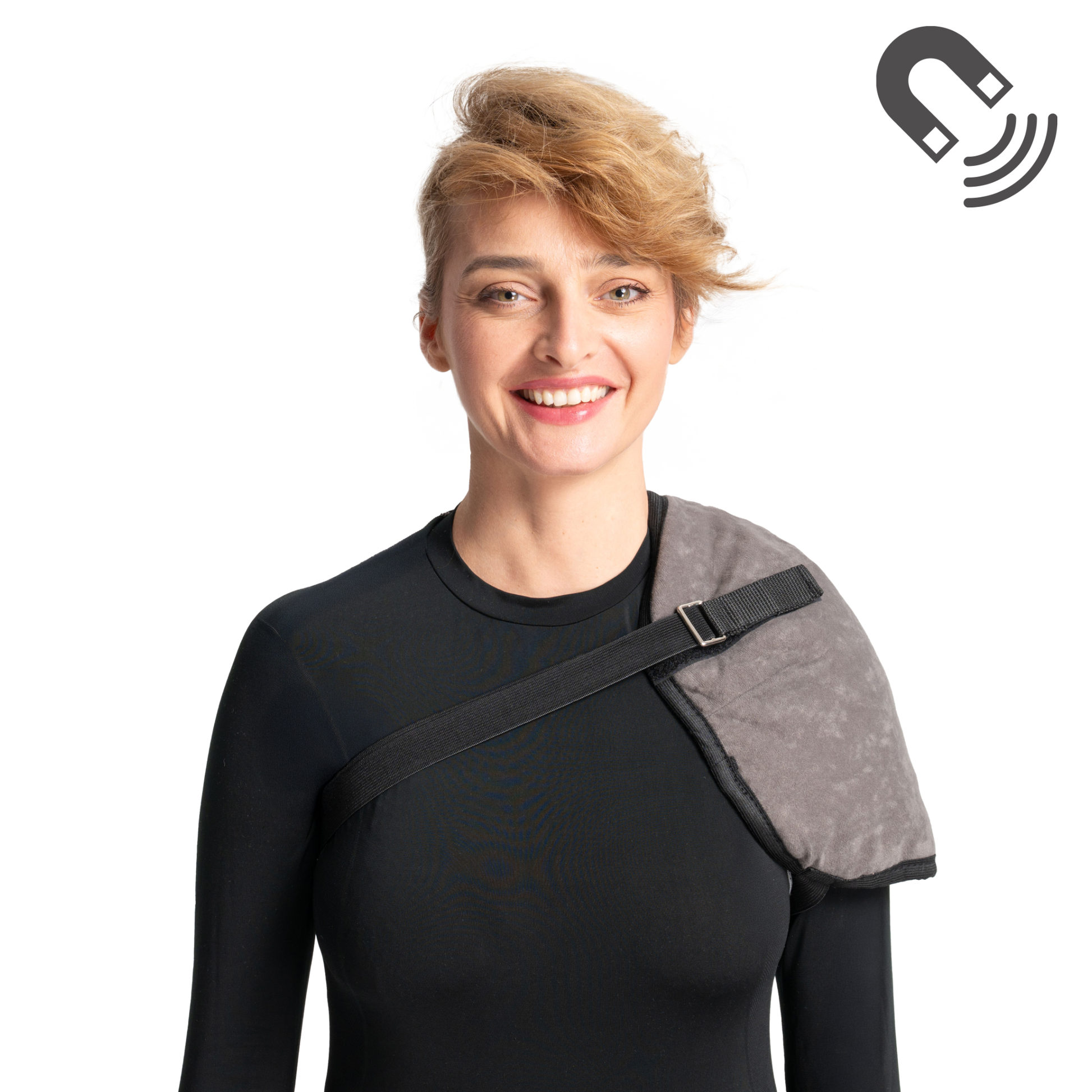 Skuldervarmer i ren merinoull med ilagte biomagneter ved hensikt å øke blodsirkulasjonen. Skuldervarmere er utstyrt med borrelås så den er enkel å ta av og på. 1 størrelse tilpasset alle!
